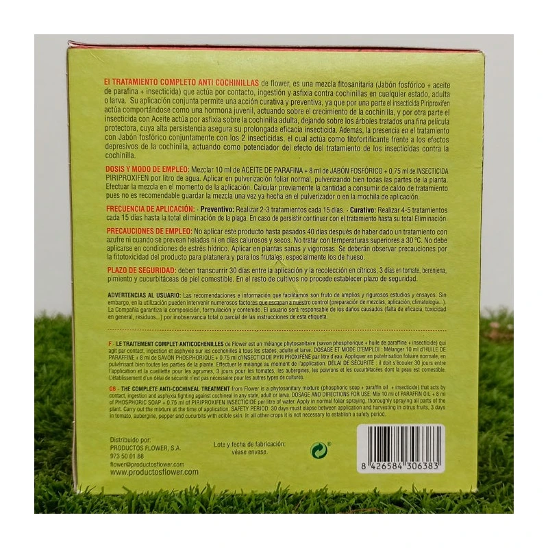 El anticochinillas completo es un pack que incluye el insecticida, aceite y ponteciador, para el tratamiento preventivo y curativo de las cochinillas en estado de larva o adulta.