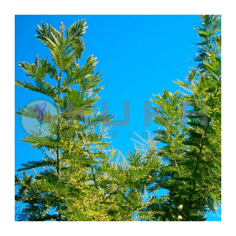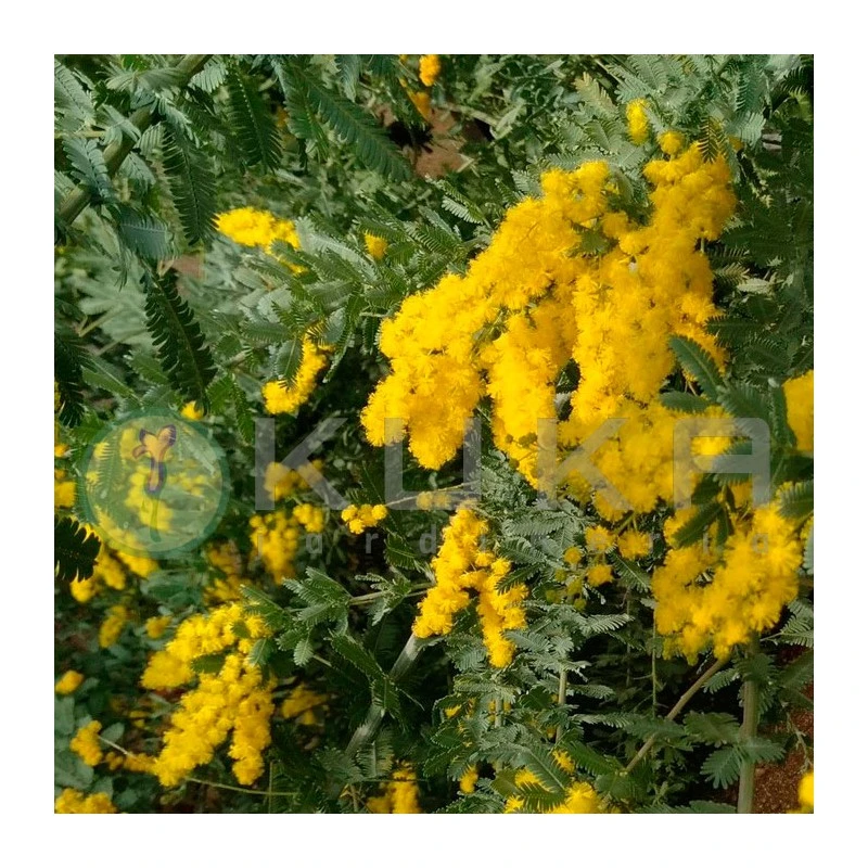 Árbol de follaje semipéndulo. Hojas de aspecto plumoso, persistente, de color glauco. Su floración es de color amarillo-cobrizo brillante.
