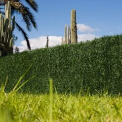 Seto bicolor de gran densidad con una ocultación total, fabricado sobre una malla metálica.